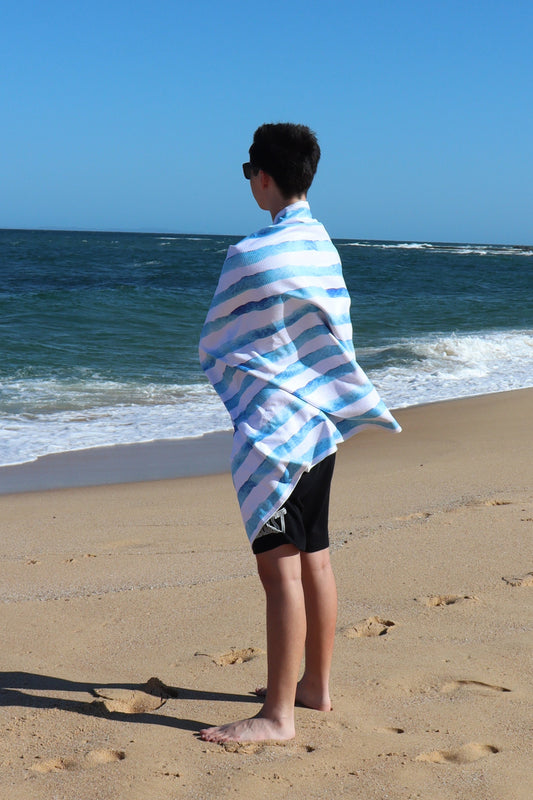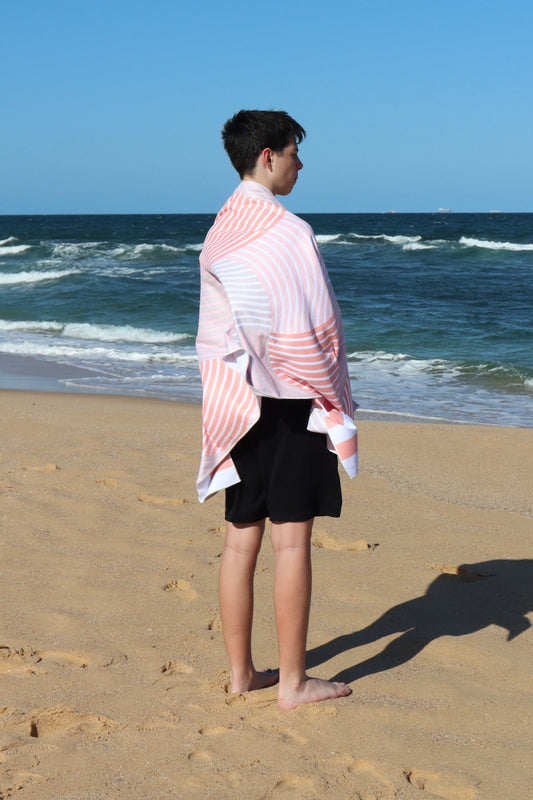 Jetty Beach Towels are the ultimate accessory for the beach, pool, gym or travel. Made from the highest quality materials and each towel is made from 20 recycled water bottles. With the double sided design not only makes them versatile but also allows customers to express their personal style.